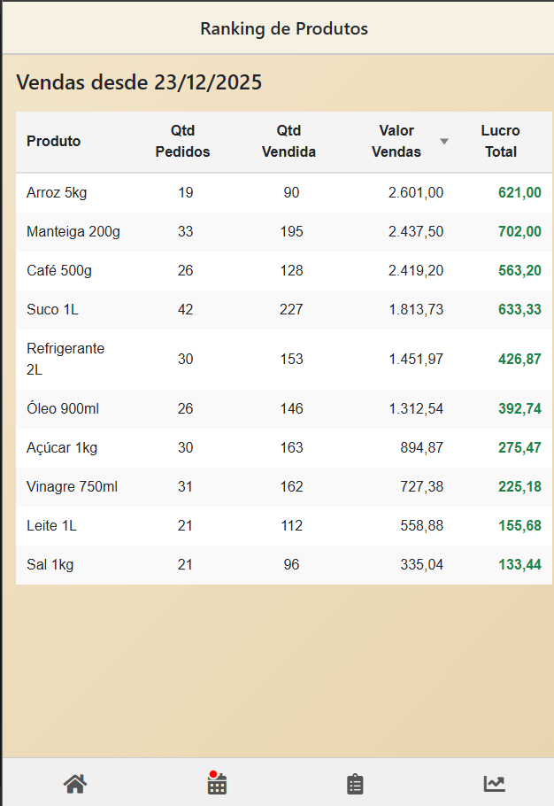 Registre vendas, despesas e fiados em segundos e enxergue se o seu negócio está dando lucro de verdade.